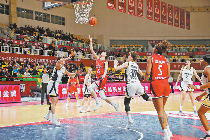 陕西榆林天泽女篮(红)主场首战浙江稠州银行女篮(白)。